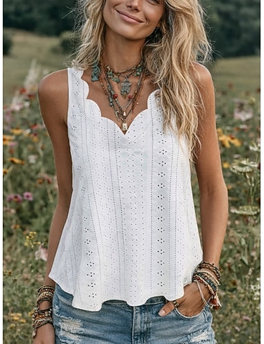 Per donna Maglietta Traforato Semplice Moda Elegante Classico Senza Maniche Scollo a V Top Regolari Quotidiano Uscire Weekend Blu Nero Bianco Giallo Rosso Estate Primavera