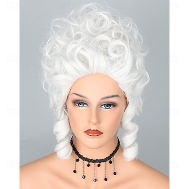 Parrucca degli Anni '20 Cosplay Parrucca Sintetica Parrucca Cosplay Maria Antonietta Riccia Riccia Parrucca del XVIII Secolo con Capelli Sintetici Bianchi di Lunghezza Media Parrucca Bianca di