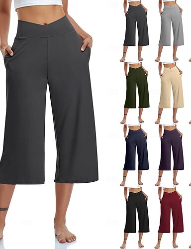 Per donna Pantaloni capri Pantaloni Eleganti Casual Atletico Lunghezza al polpaccio Naturale Semplice Tasche Laterali Comodo Traspirante Yoga Casual Quotidiano Aalbicocca Marrone scuro Nero Bianco