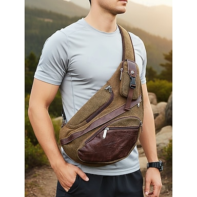 Zaino a tracolla in tela da uomo con più scomparti, borsa a tracolla vintage per escursioni all'aperto, viaggi e uso quotidiano casual