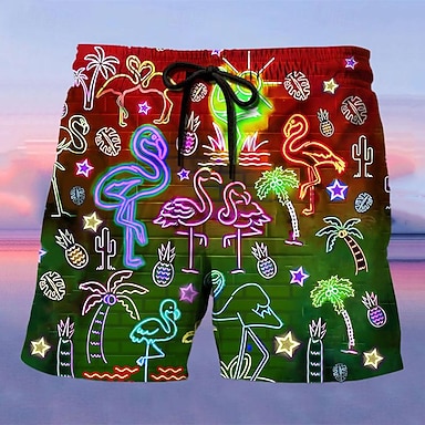 Per uomo Pantaloni Pantaloni estivi Pantaloni da spiaggia A cordoncino Vita elastica Gamba dritta Animali Fenicottero Stampe astratte Comfort Informale Giornaliero Per eventi Streetwear Hawaiano Rosa