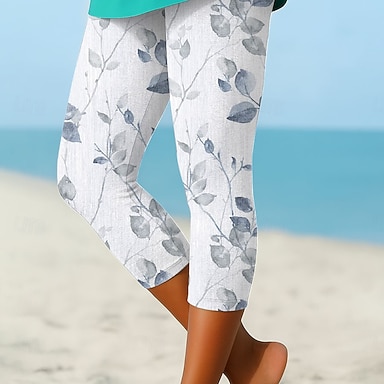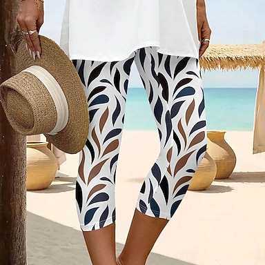 Pantaloni Capri Leggings da Donna Alta Elasticità Moda Vacanza Vintage Lunghezza Polpaccio Vita Media Stampa Animali Oceano Termica Calda Traspirante Morbida Elastico Vacanza Casual Quotidiano Bianco