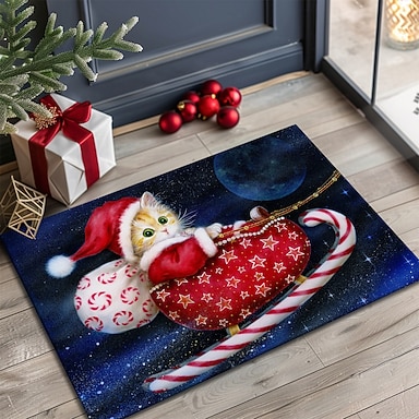 Tappetino di Natale per ingresso morbido tappeto anti-scivolo lavabile in lavatrice tappetino di ingresso in faux cashmere tappeto festivo SantaKittenInForest di Kayomi HaraiHarai
