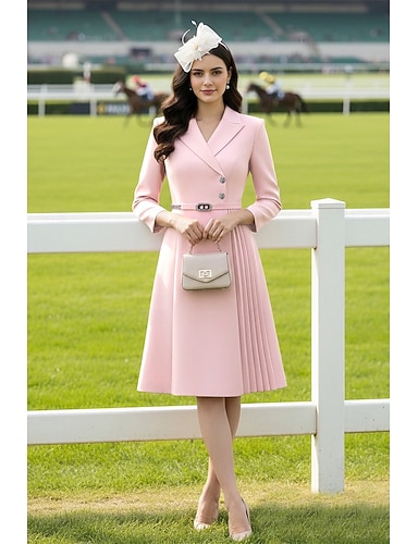 Linea ad A Lunghezza al ginocchio Abito da Ballo Vestito da Festa Abito da Cocktail Abito da cerimonia per signora Manica 3/4 Girocollo Elegante Vintage Festa Cocktail party Serata Formale