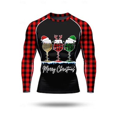 Natale Per uomo Babbo Natale Divertente Maglietta Manica Lunga maglietta Stampa 3D Girocollo Camicia Moda Essenziale 3D Streetwear Casuale Quotidiano Rosso 3 Nero Rosso Estate Primavera Abbigliamento
