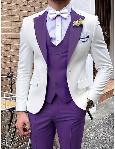 Uomo Abiti da festa Matrimonio Palcoscenico Giallo Rosso Primavera, Autunno, Inverno, Estate Tuta Bavero classico Moda Patchwork Vestibilità aderente 3 pezzi Monopetto a un bottone