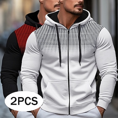 Per uomo Felpa con cappuccio Felpa con cappuccio a zip intera Felpa con cappuccio in pile Bianco + rosso Rosso + grigio Bianco + nero Gray + bianco Nero+Grigio Con Cappuccio A Pois Semplice Cerniera