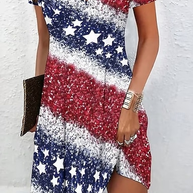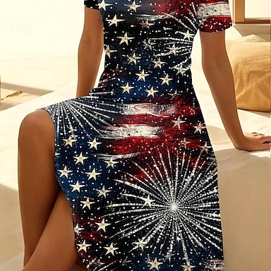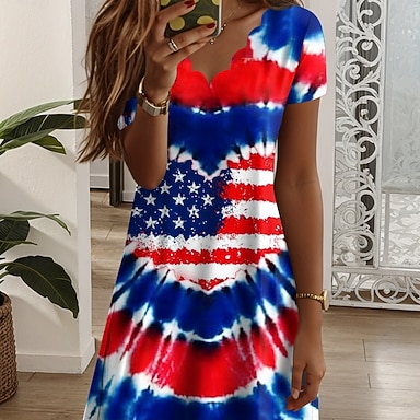 Giorno dell'Indipendenza Americana Per donna Mini Abito Vestito T-Shirt Abito a trapezio Vacanza Casual Quotidiano Vestibilità regolare Grafico Bandiera Americana Manica Corta Scollo a V Blu Bianco