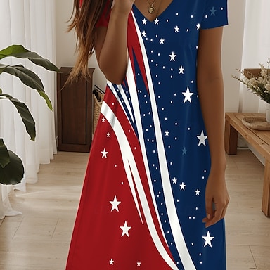 Giorno dell'Indipendenza Per donna Abito maxi Vestito Casual Abito a trapezio Abito Stampato Vintage All'aperto Vacanza Weekend Vestibilità regolare Bandiera Manica Corta Scollo a V Rosso Estate