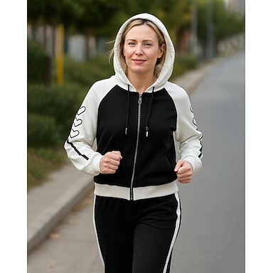 Per donna Felpa con zip Pantaloni a gamba larga Tuta da 2 pezzi Coulisse Blocco di colori Completo Abbigliamento Autunno Nero Bianco Escursionismo Lavoro Corsa Manica Lunga Sport Abbigliamento