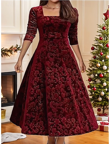 Abito Maxi in Velluto da Donna Natale Abito Sheath Abito A Line Abito Fit And Flare Abito da Festa Compleanno Formale Ospite di Matrimonio Compleanno Manica Lunga Lisa Verde Vino Primavera Autunno