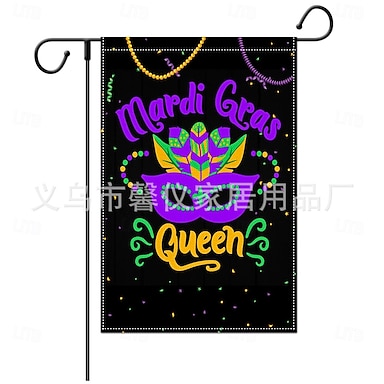 Confezione da 3 bandiere da giardino per il martedì grasso, 12x18 pollici, doppia faccia, bandiere da casa con giglio viola, verde e oro, per decorazioni da giardino, per esterni, per prato,