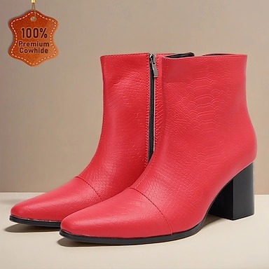 stivali classici da uomo in pelle rossa con cerniera: elegante finitura verniciata con design elegante, ideali per le feste di Natale e Capodanno