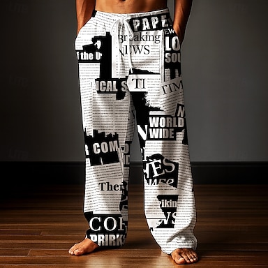 Per uomo Pantaloni Pantaloni Larghi Pantaloni casual Coulisse elastica in vita Pantaloni tipo lino con tasche Giornale Stampa lettera Lunghezza intera All'aperto Ferie Retrò Vintage Bianco Rosa