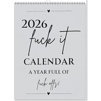 f*ck it 2026 calendario da parete con rilegatura a spirale, carattere divertente in grassetto, pianificatore mensile disegnato a mano in stile graffiti, calendario da appendere, organizer decorativo per l'ufficio in casa e per il tempo libero