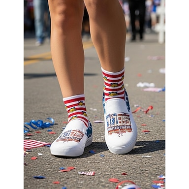 Sneakers da donna America slip-on in tela per il 250° anniversario degli Stati Uniti - stampa patriottica della bandiera USA scarpe casual leggere e traspiranti per il Giorno dell'Indipendenza parate