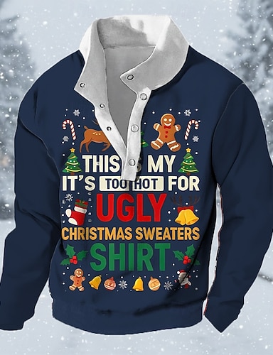 Per uomo Babbo Natale Divertente Felpa Moda Quotidiano Semplice Casual Collo Alto Vacanza Uscire Rosso Blu Verde Bottoni Autunno Inverno progettista S M L XL XXL 3XL