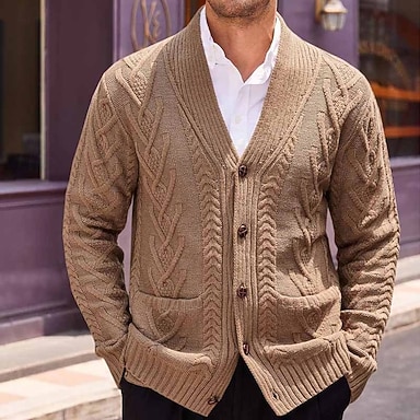 Per uomo Felpa Cardigan Treccia Maglia Tunica Cardigan con Bottoni Lavorato a maglia Semplice Scollo a V Vacanza Moda Casuale Abbigliamento quotidiano Abbigliamento Primavera & Autunno Nero Kaki S M L