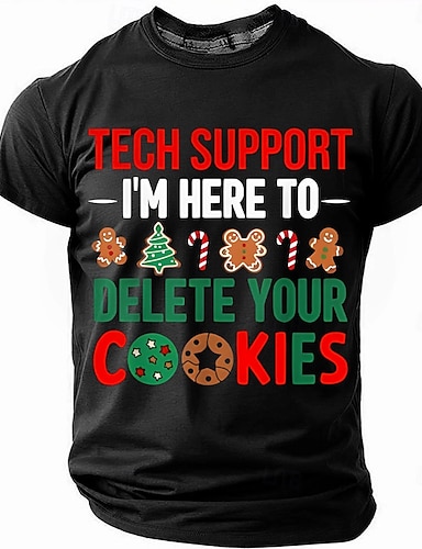 maglietta natalizia, maglietta del supporto tecnico "Sono qui per eliminare i tuoi cookie", maglietta natalizia divertente per nerd del computer, abbigliamento grafico con gioco di parole su pan di