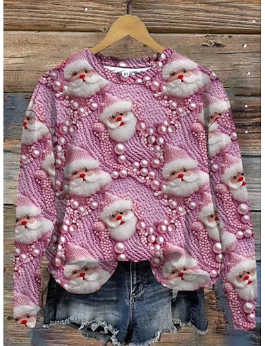 Natale Per donna Maglietta Grafico Pupazzo di neve Vintage Moda Elegante Manica Lunga Girocollo Top Regolari Quotidiano Weekend Stampato Blu Verde chiaro Rosa Rosso Arancione Autunno Inverno