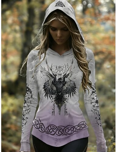 Per donna Felpa con cappuccio Grafico Animale Geometrico Casual Manica Lunga Con Cappuccio Top Regolari Casuale Abbigliamento Quotidiano Sportivo Viola chiaro Primavera Autunno