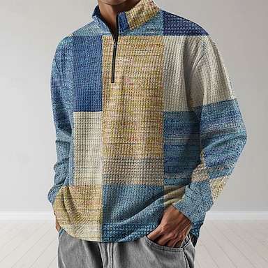 Per uomo Magliette Polo a Nido d'Ape Pullover Sport & Outdoor Abbigliamento quotidiano Zip a un quarto Manica Lunga Moda Confortevole Blocco di colori Con zip Tasca Primavera & Autunno Interstagionale