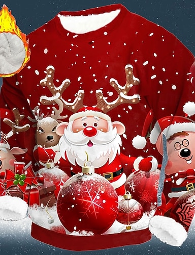 Natale Per uomo Stampa 3D 3D Fantasia "Cartone 3D" Felpe Felpa Maglia Manica Lunga Felpa Girocollo 3D Divertente Stampa 3D Natale Vacanza Feste Girocollo Stampa 3D 3D Inverno Primavera & Autunno