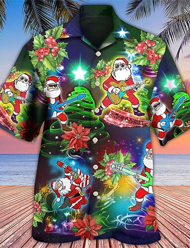 Natale Per uomo Cartoni animati Babbo Natale Renna Camicia Camicia con Bottoni Manica Lunga Divertente All'aperto Ferie Primavera Autunno Collo ripiegato Stampa 3D camicie con colletto Blu Bianco 1