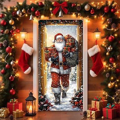 Natale Poster Copertura della porta Banner per esterni Babbo Natale Carino 3D Da serata Dormitorio Stanza per adolescenti Dormitorio universitario Ragazzi Man Cave Frat Bedroom Sfondi di ripresa