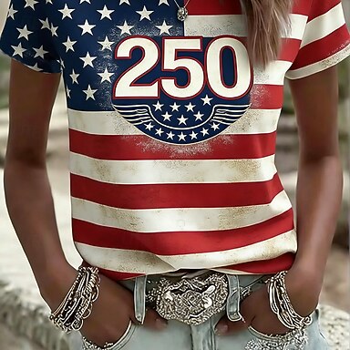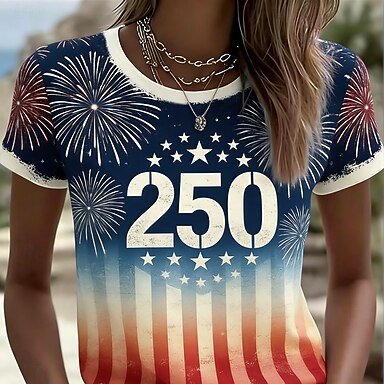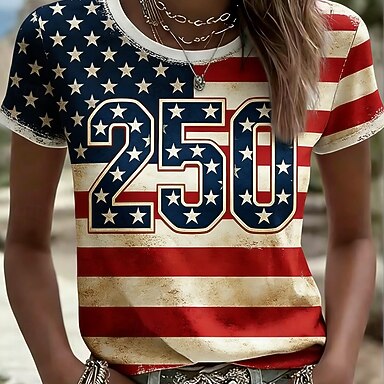 Giorno dell'Indipendenza Anniversario Americano Patriottico Maglietta Donna Grafica Bandiera Nazionale Vintage Elegante Classica Manica Corta Girocollo Stile Giornaliero Weekend Stampa Blu Rossa