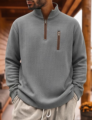 Per uomo Maglietta Maglietta a Maglia Waffle Camicia a Maniche Lunghe Manica Lunga Zip a un quarto Primavera & Autunno Blocco di colori Moda Designer Essenziale Patchwork Cerniera Vacanza Streetwear