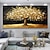 dipinto astratto di un albero dorato, dipinto su tela con fiori dorati, dipinto strutturato di un albero da camera da letto in oro e nero, opera d'arte, dipinto acrilico da parete per camera da letto