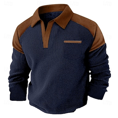 Per uomo Maglietta Waffle Maglietta Manica Lunga Mezza zip Autunno Autunno & Inverno Tinta unica Tradizionale / Vintage Casual Blocco di colore Tasca con cerniera All'aperto Casa Sport & Outdoor Blu