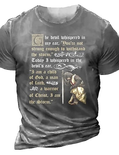 Maglietta T-Shirt per Uomini Crociati Cavalieri Templari Lettera T-Shirt Stampa 3D Camicia con Collo Giro Religiosa Athleisure Stile Street Sport Outdoor Nera Blu Verde Estate Primavera Abbigliamento