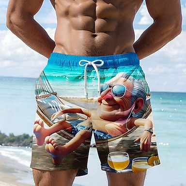 Per uomo Cartoni animati Vecchio Uomo Costumi da bagno Pantaloncini da mare Pantaloncini da Surf Misura del girovita medio Hawaiano Divertente Vacanza al Mare Tasche Laterali fodera in rete Coulisse