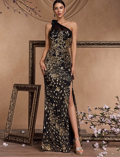 トランペット/マーメイド コートトレーン 卒業ドレス イブニングドレス ボールガウン フォーマルドレス エレガント きらきら&ピカピカ 長袖 ワンショルダー 婚約 フォーマルイブニング スパンコール とともに スパンコール