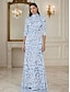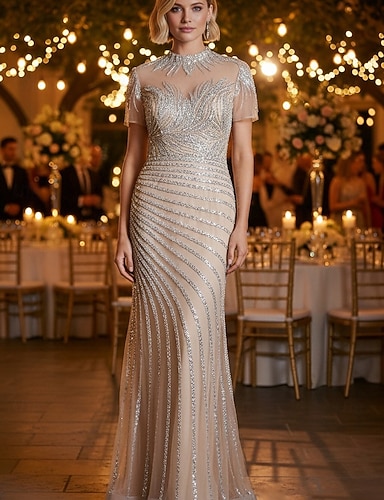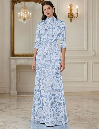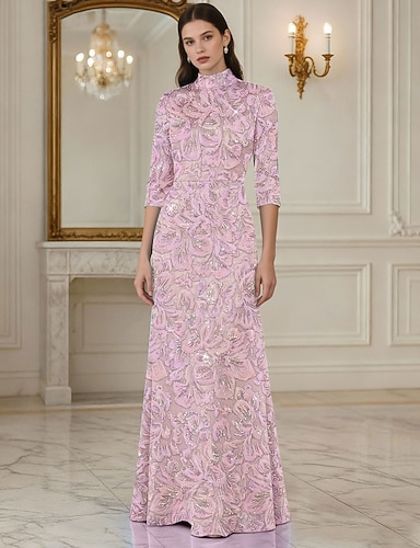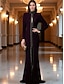 シース カラム フロア レングス フォーマル ドレス イブニング ガウン イブニング ガウン エレガント ヴィンテージ ロング スリーブ ハイ ネック イブニング パーティー ウェディング パール クリスタル ビーディング付き