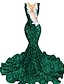 トランペット/マーメイド スイープ/ブラシトレーン プロムドレス パーティードレス フォーマルドレス イブニングドレス エレガント パーティー きらびやかな 半袖 ハイネック プロムドレス 結婚式 とともに レース スパンコール