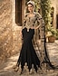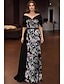 タイト/コラム フロア丈 ビーズ刺繍 フォーマルドレス 花嫁の母のドレス 卒業ドレス イブニングドレス ボールガウン フォーマルドレス エレガント きらびやかな セレブスタイル 七分袖 オフショルダー ガーデンパーティー 結婚式 レース とともに スパンコール アップリケ