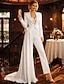 ツーピース ジャンプスーツ コートトレーン スイープ/ブラシトレーン ウェディングドレス イブニングドレス オーバースカート付きボールガウン フォーマルドレス カジュアル 長袖 ハートカット サテン ストレッチ生地 とともに レース アップリケ