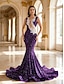 トランペット/マーメイド コートトレーン 卒業ドレス イブニングドレス ボールガウン フォーマルドレス エレガント ノースリーブ イリュージョンネックライン カーニバル フォーマル アフリカ系アメリカ人 スパンコール とともに スパンコール