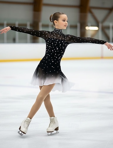 フィギュアスケート ドレス 女の子 アイススケート ドレス ブラック パッチワーク オープンバック 伸縮性あり 訓練 競技大会 スケートウェア クラシック クリスタル・ラインストーン 長袖 アイススケート フィギュアスケート