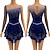 フィギュアスケート ドレス 女性用 アイススケート ドレス ダークブルー パッチワーク アシンメトリーヘム 伸縮性あり 訓練 競技大会 スケートウェア クラシック クリスタル・ラインストーン 長袖 アイススケート フィギュアスケート