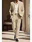 男性用 タキシード リネンスーツ ビーチウェディング 結婚式 ライトカーキ スカイブルー 夏 スーツ Vネック ソリッド テイラーフィット 2点セット