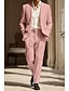 男性用 タキシード リネンスーツ プロムドレス 結婚式 ホワイト ピンク 夏 ジャケット ピークドラペル パーティー ライトウェイト ソリッド スリムフィット 2点セット シングルブレスト 二つボタン