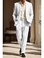 男性用 タキシード リネンスーツ プロムドレス 結婚式 ホワイト ピンク 夏 ジャケット ピークドラペル パーティー ライトウェイト ソリッド テイラーフィット 2点セット シングルブレスト 二つボタン