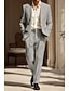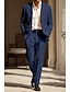 男性用 コットン リネン スーツ カジュアル ビジネス エレガント フォーマル ブルーグレー ブラック オーシャンブルー 純色 スリムフィット ロング丈 伸縮性なし