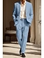 男性用 タキシード リネンスーツ ビーチウェディング 結婚式 スカイブルー ライト 春、夏、秋、冬 スーツ 日常 ライトウェイト ソリッド スタンダードフィット 2点セット シングルブレスト 一つボタン