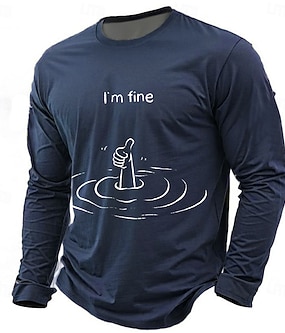 メンズ長袖グラフィックシャツ「私は大丈夫、溺れているけどサムズアップ」面白く皮肉なユーモア