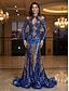 トランペット/マーメイド フロア丈 卒業ドレス イブニングドレス 成人式ドレス ボールガウン エレガント 長袖 クルーネック プロムドレス パーティー スパンコール とともに スパンコール